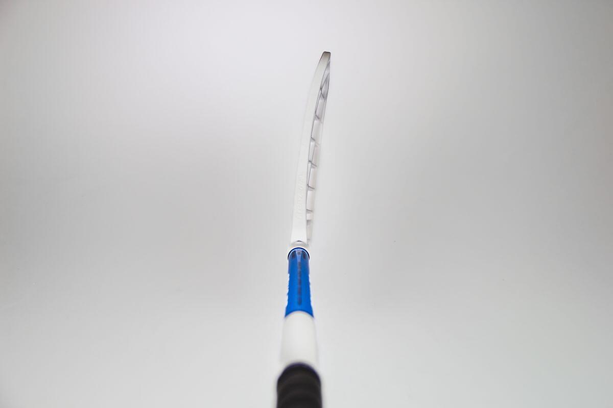 Umiarkowanie szeroka łopatka doskonale prowadzi piłkę, poziome żebrowanie pomaga piłce "wylecieć" z łopatki z maksymalną dokładnością, nic nie zakłóca ruchu piłki podczas strzelania lub podawania - równa linia żebrowania była długo testowana i wyjątkowo dopełnia wspaniałe wrażenia z gry.